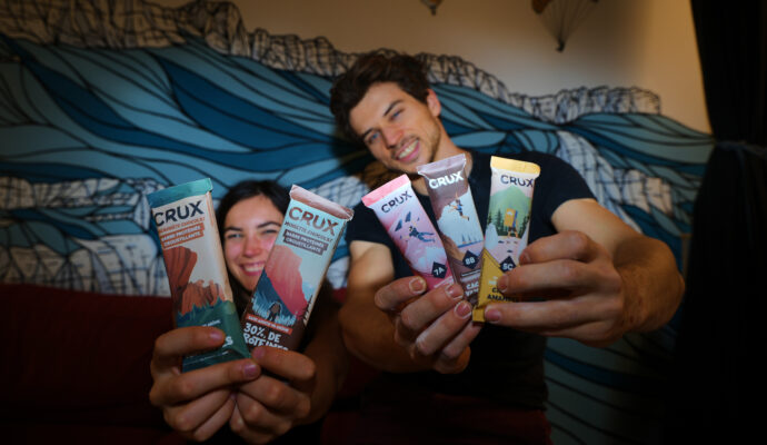 Margaux et Valentin, grimpeurs passionnés et ingénieurs en agroalimentaire, ont donc eu l’idée de créer leur propre alternative. Leur mission : concevoir des produits adaptés aux besoins des grimpeurs, tout en restant fidèles aux valeurs de l’escalade.
